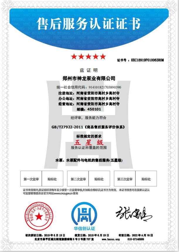 祝贺火博体育平台官方网站-火博(中国)获得水泵、水泵配件与电机的五星级售后服务认证。